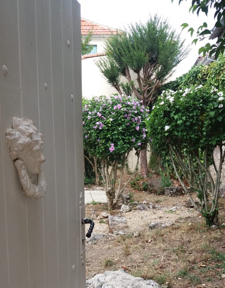 En plein cœur du village de Ribérac, dans une impasse au calme, vous pourrez profiter d’un charmant jardin clos, arboré et fleuri et sans vis à vis.